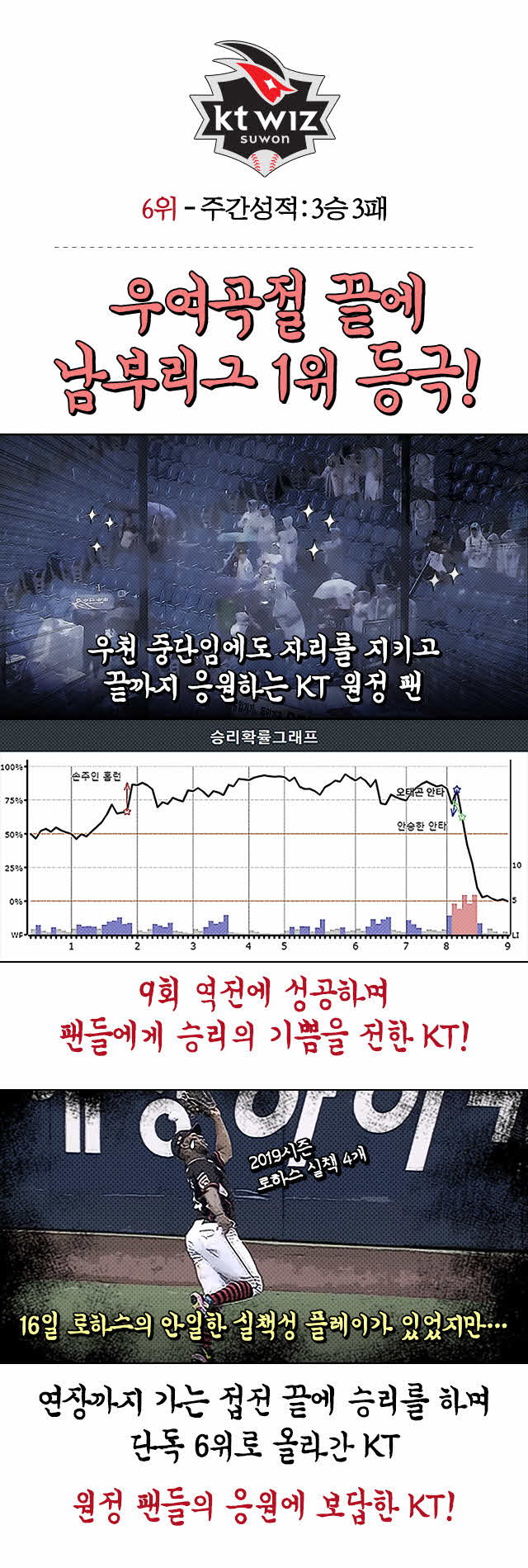 | 2 | KT | 144 | 81 | 62 | 1 | 0.566 | 4.5 |